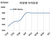 FOB Korea 1005달러로 15달러 올라 … 용제는 980달러 유지