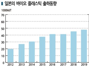일본 바이오플래스틱협회에 따르면, 바이오 플래스틱 출하량은 2017회계연도(2017년 4월-2018년 3월) 3만9565톤에서 2018회계연도 3만4757톤, 2019회계연도 4만6650톤으로 증가추세를 나타냈다.