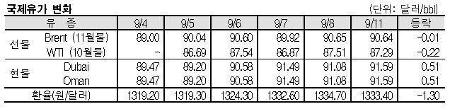 9월11일 국제유가는 유럽 경제성장률 전망치 하향 조정으로 하락했다.