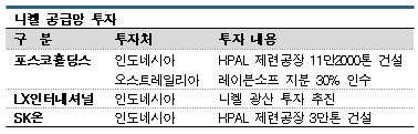 양극재용 고품질 니켈 잉곳을 생산하기 위해서는 니켈매트, 니켈·코발트 혼합 황화물(MS: Mixed Sulfide), MHP 생산이 가능해야 하나 기존 인도네시아 제련공장들은 스테테인리스 원료 정련설비 뿐이어서 앞으로도 설비투자가 가속화될 것으로 예상된다.