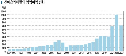 신에츠케미칼은 2023회계연도(2023년 4월-2024년 3월) 매출액이 2조3000억엔으로 전년대비 18.1%, 영업이익은 7000억엔으로 29.9%, 순이익은 5200억엔으로 26.6% 급감할 것으로 예상하고 있다.