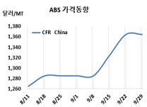 표, 그래프: <ABS 가격동향> <화학저널 2023/10/05> |