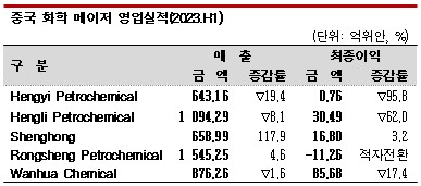 다만, 석유정제 및 석유화학 일체화 컴플렉스를 가동하고 있는 중국 화학 메이저들은 스프레드 개선, 수요 회복 속도가 둔화됨에 따라 Shenghong 등 일부를 제외하고는 고전하고 있다.