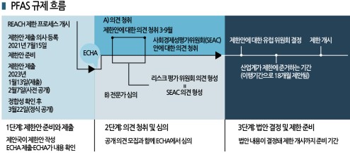 ECHA는 5개국 규제안 공동 제출을 계기로 2023년 6월부터 리스크 평가 위원화, 사회경제성 평가 위원회 논의를 시작했으며 9월까지 의견을 모을 예정이다.