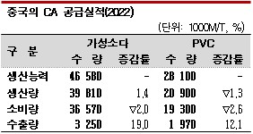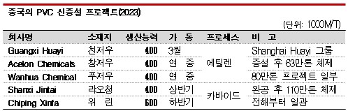 2023년에도 Shanxi Jintai 등이 카바이드 공법 PVC 플랜트를 신규 가동할 것으로 알려졌다.