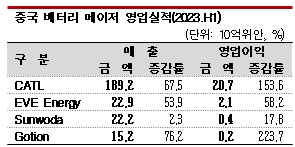CATL은 2023년 상반기 매출액이 1892억위안으로 전년동기대비 67.5% 급증하고 순이익은 207억위안으로 153.6%로 폭증했다.