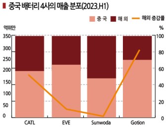 특히, 해외사업 매출이 656억위안으로 약 3배 폭증해 중국 제외 시장에서도 점유율이 27.2%로 5.0%포인트 가까이 급등했으며 독일, 헝가리 등 유럽공장을 가동한데 이어 인도네시아, 타이, 베트남 등 동남아 시장 개척을 통해 해외 매출액 증대에 속도를 내고 있다.