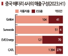 Gotion은 자동차용 배터리, ESS용 배터리, 송전설비 사업을 영위하고 있으며 2023년 상반기 전체 매출 중 60.0%를 차지하는 자동차용이 104억위안으로 58.5% 급증했을 뿐만 아니라 ESS용 역시 3배 폭증하며 총매출액이 152억위안으로 76.2% 급증했다.