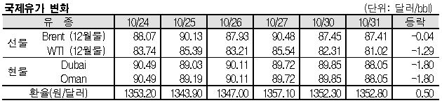 브렌트유, 87.41달러로 0.04달러 떨어져 … 두바이유는 88.05달러 형성
