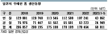 다만, 일본은 2022년 PPG 생산량이 23만2435톤으로 16.3% 감소했고 2023년 1-5월 10.4% 줄어드는 등 부진이 이어지고 있다.