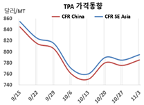 CFR China 785달러로 10달러 상승 … 11월 수요는 부진 전망