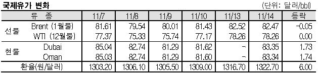 11월14일 국제유가는 중동 긴장 완화에 따라 보합세에 머물렀다.