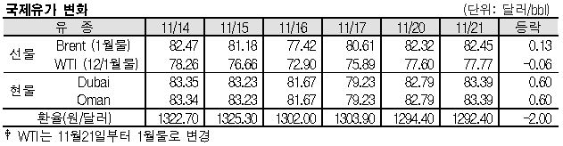 브렌트유, 82.45달러로 0.13달러 올라 … 두바이유는 83.39달러 형성