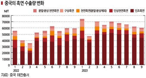 중국 해관총서에 따르면, 중국은 2023년 1월 인조흑연 수출량이 약 4만8000톤으로 전년동월대비 약 66% 급증했으며 2-9월에도 나머지 흑연에 비해 인조흑연 수출이 현저한 증가세를 나타낸 것으로 파악된다.