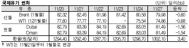 한편, 시장 참여자들은 11월30일 OPEC(석유수출국기구)+ 회의에서 추가 감산 여부를 주목하고 있다.