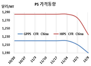 GPPS, CFR China 1190달러 20달러 하락 … SM 하락과 수요부진