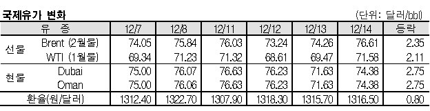 브렌트유, 76.61달러로 2.35달러 올라 … 두바이유, 74.38달러 형성