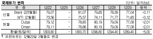 브렌트유, 77.04달러로 0.11달러 떨어져 … 두바이유, 77.08달러 형성