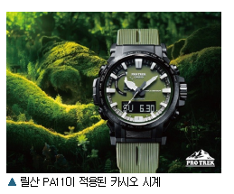 카시오(Casio)는 릴산 PA11을 2022년 출시한 아웃도어용 시계 PRO Trek PRW-61에 채용했다.
