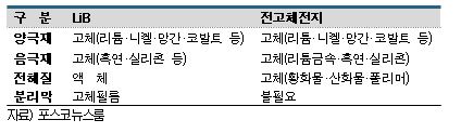 고분자계는 기존 양산 공정을 적용해 생산비용을 낮출 수 있고 상용화가 쉽지만 이온전도도가 낮고 저온 환경에서 성능이 저하되는 것으로 알려졌다.