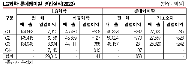 LG화학, 영업이익 41억원 추정 … 롯데케미칼은 영업적자 계속