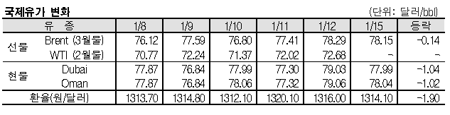 1월15일 국제유가는 중동지역의 공급차질 우려 완화를 타고 하락했다.