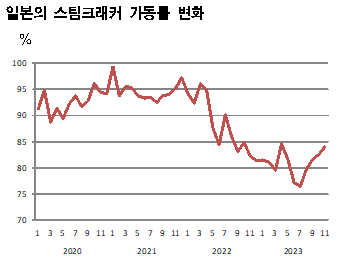 일본, 11월 84.1%로 2%p 가까이 올라 … 주요제품 생산 부진 여전