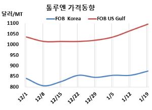 FOB Korea 875달러로 20달러 상승 … 중국‧인디아도 20달러 상승