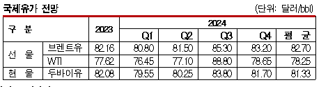 이준범 수석위원이 전망한 2024년 국제유가는 표와 같다.