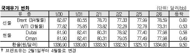 2월6일 국제유가는 미국의 원유 생산 전망 하향으로 상승했다.