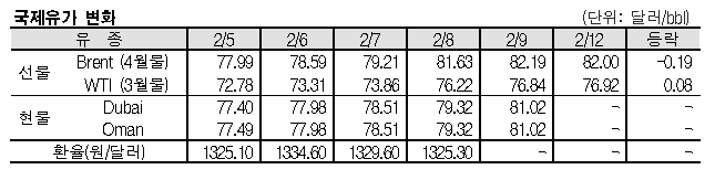 2월12일 국제유가는 사우디가 잉여 생산능력을 공개함에 따라 하락했다. 국제유가는 최근 미국 수급타이트를 타고 상승 추세를 나타냈으나 사우디가 잉여 생산능력을 보유하고 있다고 공개하며 하락 전환했다. 표, 그래프: <국제유가 변화> <화학저널 2024/02/13> |