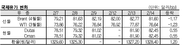 2월14일 국제유가는 미국 원유 재고 증가의 영향으로 하락했다.