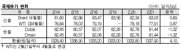 브렌트유, 83.03달러로 0.69달러 올라 … 두바이유, 81.44달러 형성