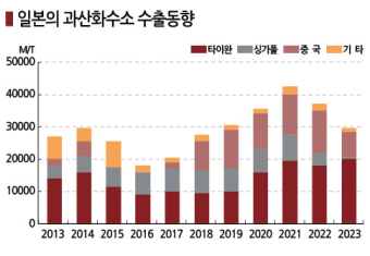 2017년부터 한국산 과산화수소 수입량 2만톤 전후를 꾸준히 유지하고 있는 일본은 2022년 과산화수소 출하량이 16만8000톤으로 11.5% 감소했다.