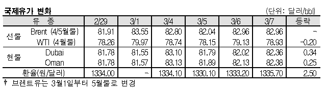 3월7일 국제유가는 중국 경제 지표 호조와 충분한 석유 공급 전망으로 보합세를 나타냈다.