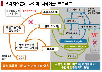 브리지스톤은 2050년까지 사람과 물자의 이동이 지금의 2-2.5배로 확대될 것으로 예상되는 가운데 기후변화를 고려하면 타이어 수요 증가를 충당하기 어려워질 것으로 판단하고 기존 개발·조달·생산·판매로 이어지는 선형적 비즈니스 모델에서 탈피해 리사이클 및 솔루션으로 사업영역 확장에 박차를 가하고 있다.