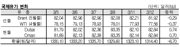 3월12일 국제유가는 미국과 OPEC(석유수출국기구)의 생산 증가 영향으로 상승했다.