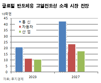 높은 열전도성 소재 시장이 확대될 것으로 예상된다. 표, 그래프: <글로벌 반도체용 고열전도성 소재 시장 전망> <화학저널 2024/03/13> |