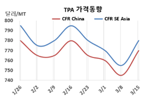 CFR China 770달러로 25달러 상승 … PTA도 5달러 소폭 상승