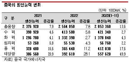 중국이 재생가능에너지 확대를 앞두고 전력망 정비 문제로 고심하고 있다. 표, 그래프: <중국의 발전능력 변화> <화학저널 2024년 03월 25일> |
