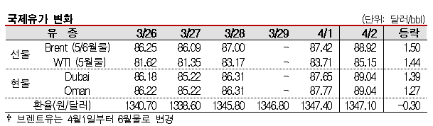 4월2일 국제유가는 지정학적 리스크의 영향으로 급등했다.