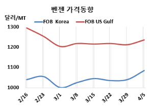 FOB Korea 1085달러로 45달러 상승 … 유럽은 폭등‧폭락에서 벗어나