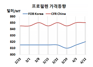 FOB Korea 820달러로 5달러 상승 … 동북아 재고보충에 일부 상승