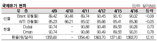 반면, 중동의 지정학적 리스크는 국제유가 하락 폭을 제한했다.