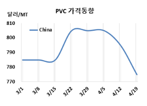 CFR China 775달러로 20달러 하락 … 다운스트림 부진 영향