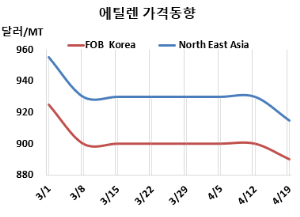 CFR NE Asia 915달러로 15달러 하락 … 정기보수 시즌 진입은 변수