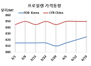 FOB Korea 820달러로 5달러 상승 … 제한된 공급에 소폭 올라