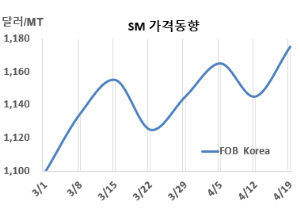 FOB Korea 1175달러로 30달러 상승 … 유럽은 공급증가 전망에 폭락
