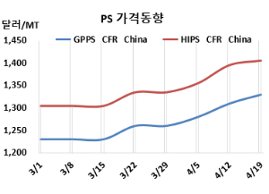 GPPS, CFR China 1330달러로 20달러 상승 … 중국 내수도 상승세