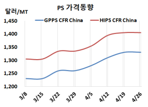 GPPS, CFR China 1330달러로 변동없어 … 중국 내수는 등락 엇갈려